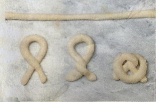 - Diese zu ca. 50cm lange Rollen formen und daraus Schlaufen bilden