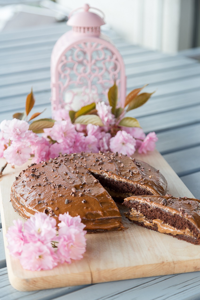 - Während der Kuchen abkühlt, alle Zutaten für die Schokocreme in einem Mixer zu einer Creme mischen